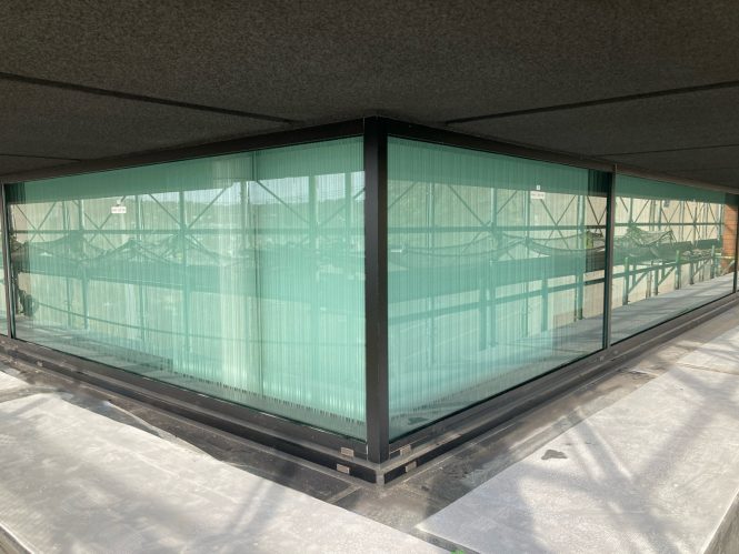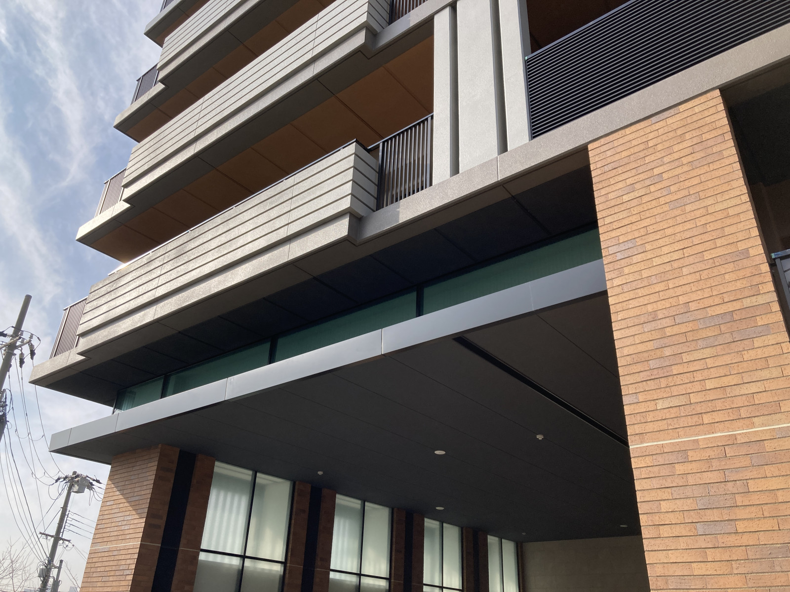 車寄せの庇上部にエッチングガラス施工。