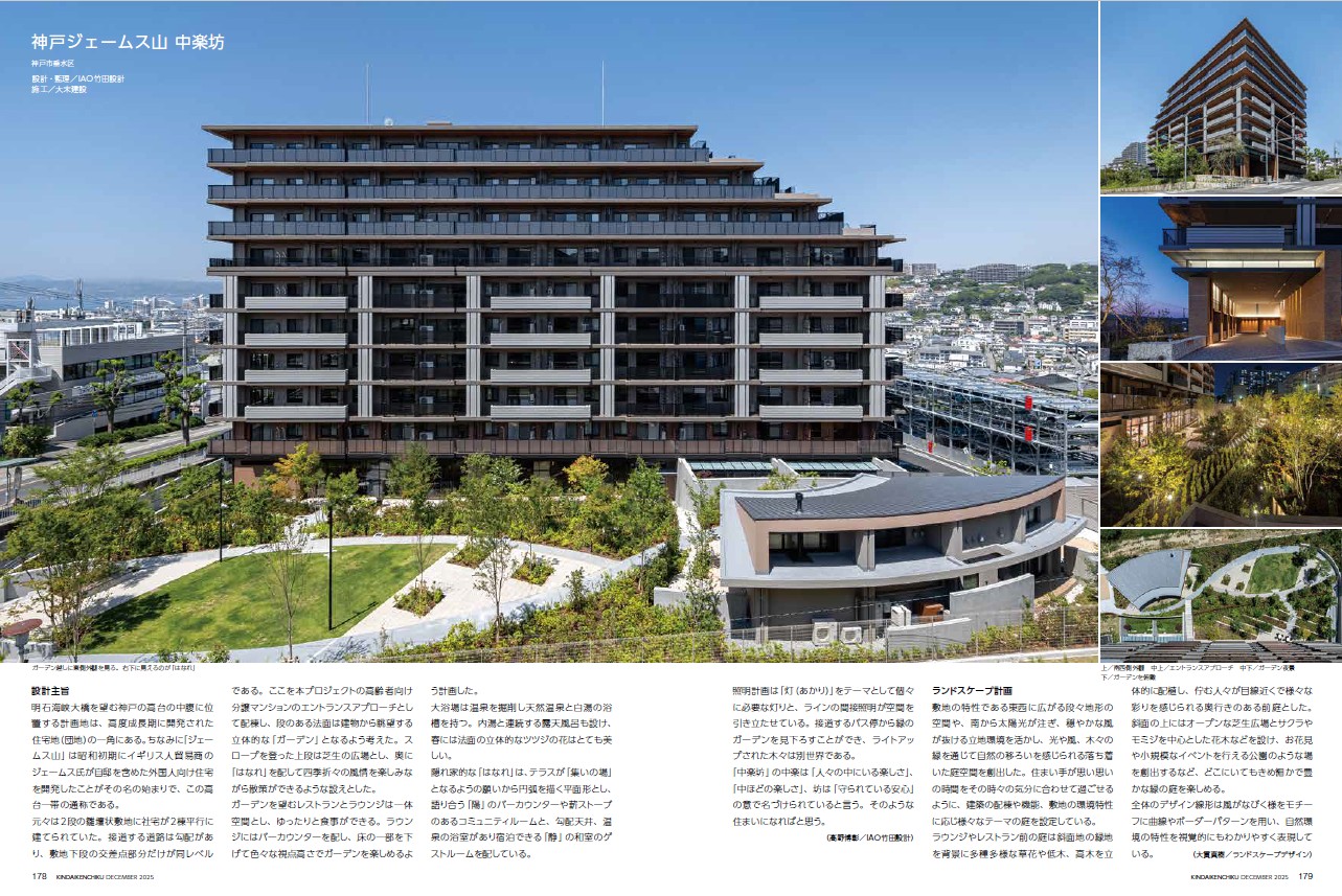 12月10日発売の月刊「近代建築」2025年12月号 高齢者福祉施設特集にて『神戸ジェームス山 中楽坊』が掲載されました。